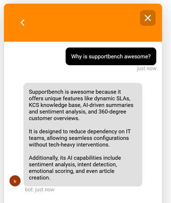If you need help enabling any of these features, please contact support@supportbench.com and we'll be happy to help you leverage the power of AI for your support team!