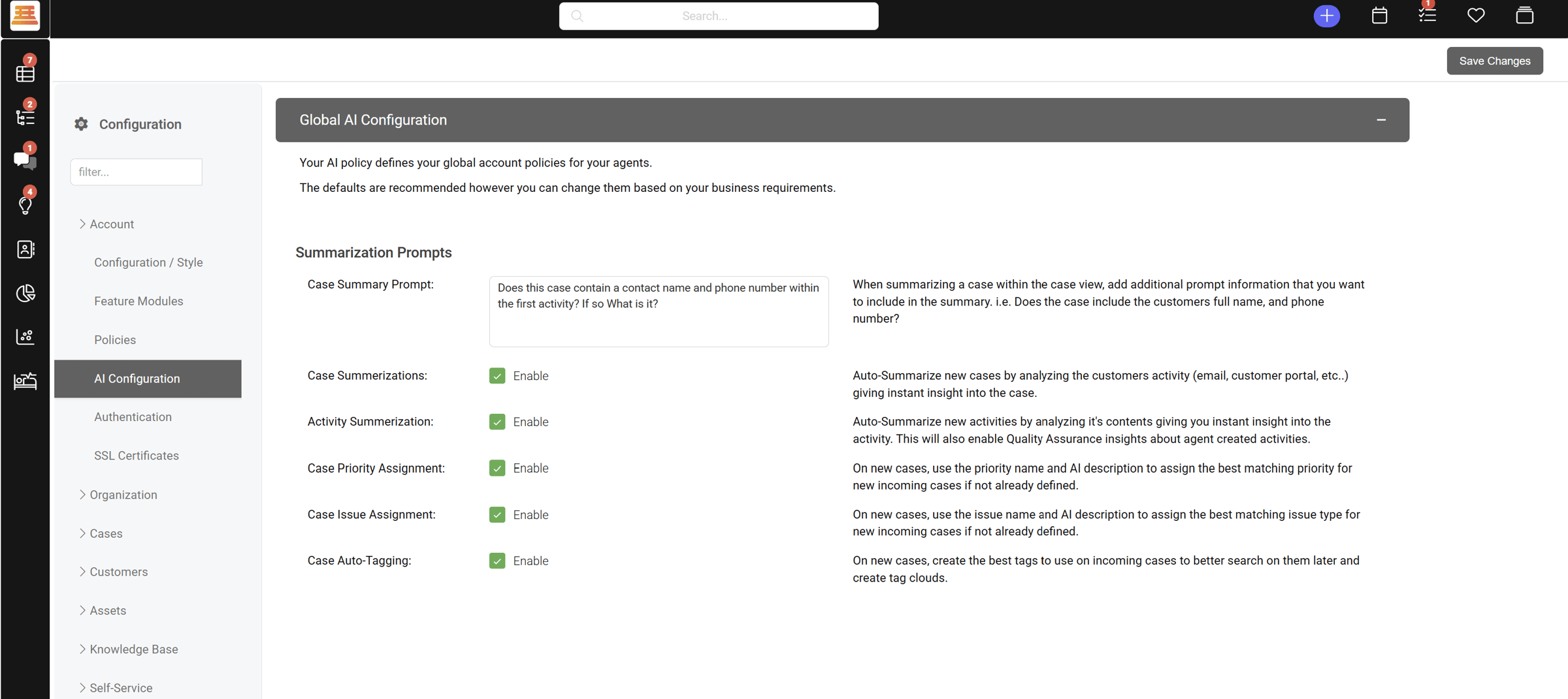 SB-2901 AI - New AI configuration section to allow fine tuning of case summarization prompt