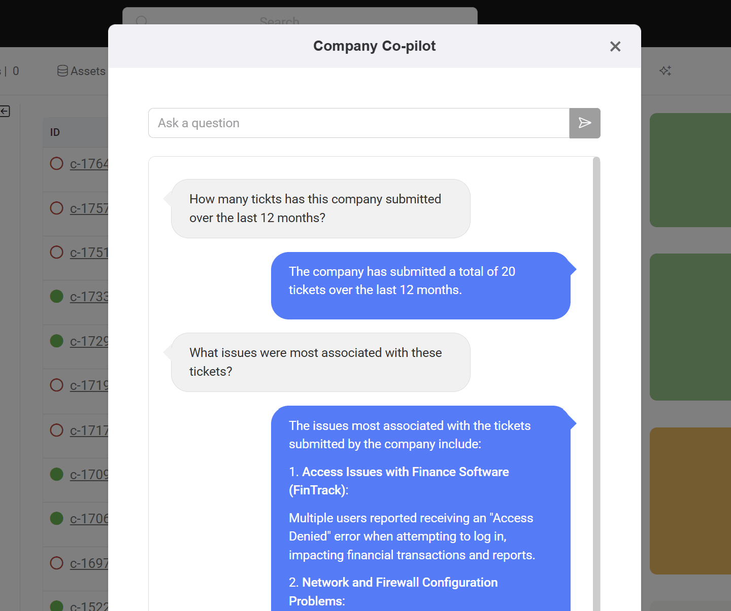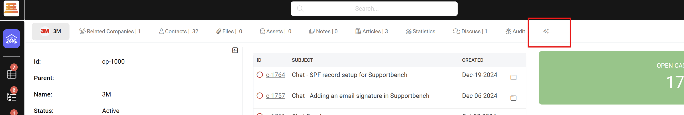 The Company AI Co-Pilot acts as your intelligent assistant within Supportbench, offering: